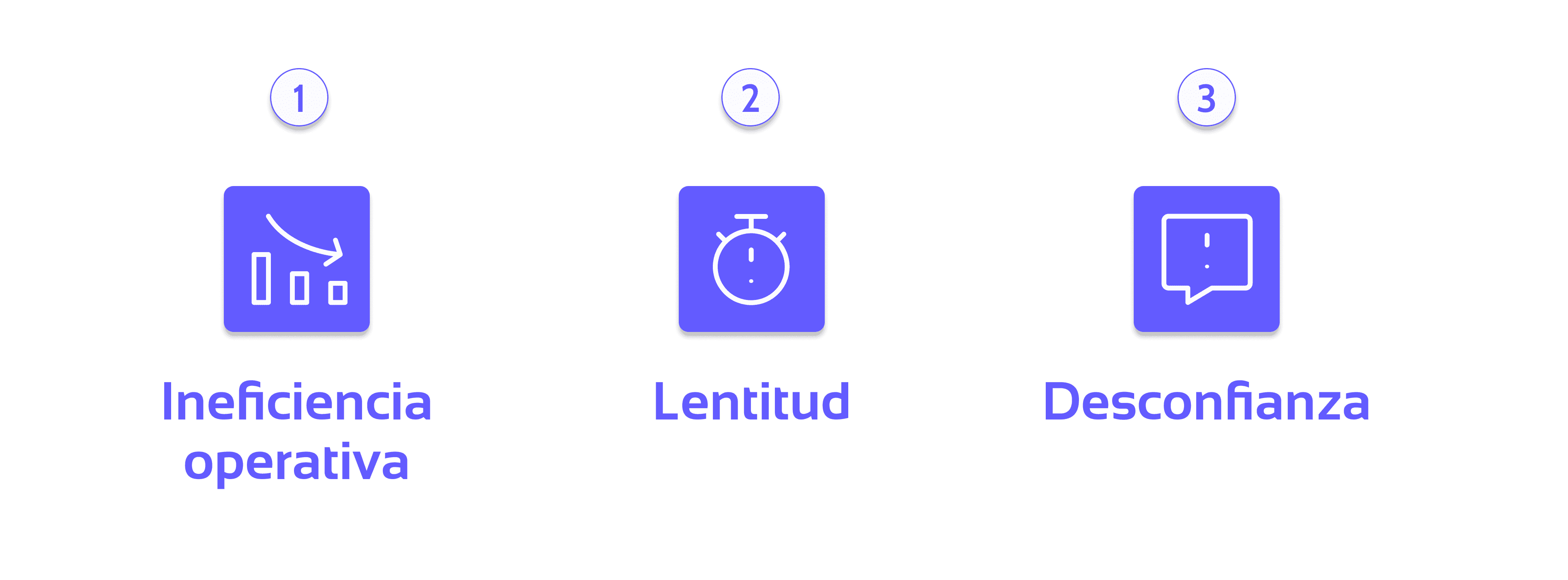Ineficiencia operativa: Como los procesos manuales eran más lentos, generaba reclamos de los clientes. Eso hacía que los tickets de soporte aumentaran, incrementando a su vez la carga laboral, el estrés del equipo y el enojo de los clientes.